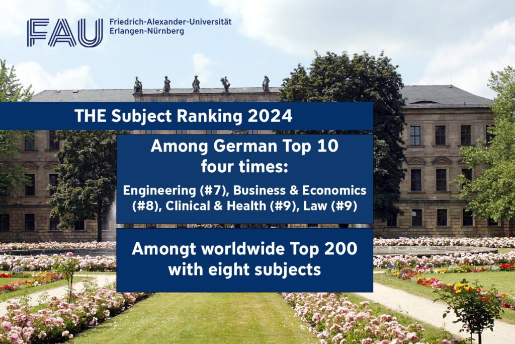 For the second year running, FAU is included in the THE subject ranking for all eleven subjects that were investigated. Worldwide, it made it into the top 200 for eight subject groups, and within Germany even into the top 20 with all subjects.