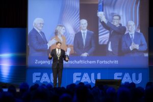 “FAU is celebrating its achievements, and quite rightly so,” said the Minister of Science Markus Blume. “Nearly 40,000 students, a record-holder for the renowned Humboldt professorships, top of the league for patent applications and one of Germany’s best universities in leading rankings: Excellent results for our flagship university in Middle Franconia. The State Government is providing its full support. Our High-Tech Agenda Bavaria has brought 170 positions to FAU, 60 of which are professorships. And our extensive construction projects worth over 2 billion euros are providing the best surroundings for students and staff. May FAU’s success continue for many more years!”