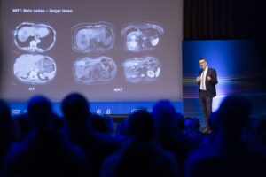 The keynote speech was held by Prof. Dr. Michael Uder on the topic “A new MRI for the world”. In conjunction with Siemens Healthineers, Uder, who is director of the Institute of Radiology at Uniklinikum Erlangen and Chair of Diagnostic Radiology, developed a new magnetic resonance imaging system that can also be used in places where it is currently not possible, such as in developing countries for instance. In 2023, he received the German Future Prize of the Federal President for the innovation. Professor Uder presented his invention in his keynote speech.