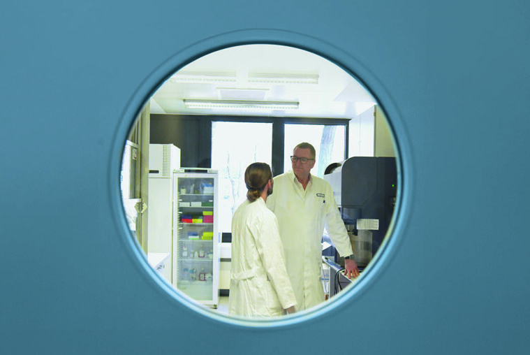 Erlangen is one of the few academic centers permitted to produce CAR-T cells in Europe. It took nearly five years until the authorities responsible, the government of Upper Franconia, granted permission in 2019. Andreas Mackensen and his team supporting the head of production PD Dr. Michael Aigner had to meet numerous bureaucratic requirements and set up a laboratory classed as security level S2 with clean rooms before they were permitted to conduct work involving genetic engineering. In addition, qualified staff are required, with approximately a dozen people working in the laboratory. The cells are produced in a closed system (prodigy system), a type of bioreactor, developed by the company Miltenyi Biotec®. All clinical studies with CAR-T cells require the permission of the department at the Paul-Ehrlich-Institut responsible for cellular therapies.