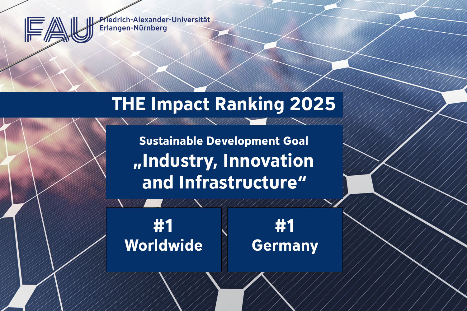 Friedrich-Alexander-Universität Erlangen-Nürnberg (FAU) has retained its position as one of the most innovative universities not only in Germany, but worldwide. Furthermore, FAU has also been ranked as one of the world leaders in the area of sustainable consumption and affordable and clean energy in recognition of our efforts in this field. These are the findings of the latest “Impact Ranking” of the British education magazine Times Higher Education (THE). The ranking evaluates how universities across the world contribute to the 17 United Nations’ Sustainable Development Goals (SDGs).