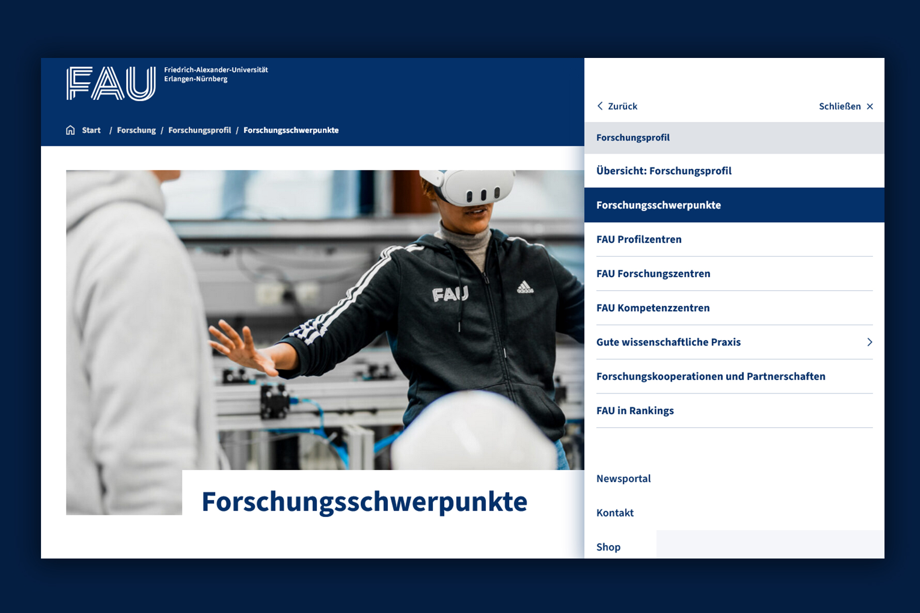 The technical design of the website means it will remain fit for the future for a long time to come: It is accessible, optimized for mobile devices, has an improved search function and is based on WordPress as a flexibly expandable system. It was implemented in collaboration with the agency Modula from Hamburg (technology) and Studio Good from Berlin (design). “Close partnerships on an equal footing have led to a website that showcases all aspects of the University and will continue to lead the way into the future,” says Katrin Burkhardt, project manager for the FAU web relaunch.