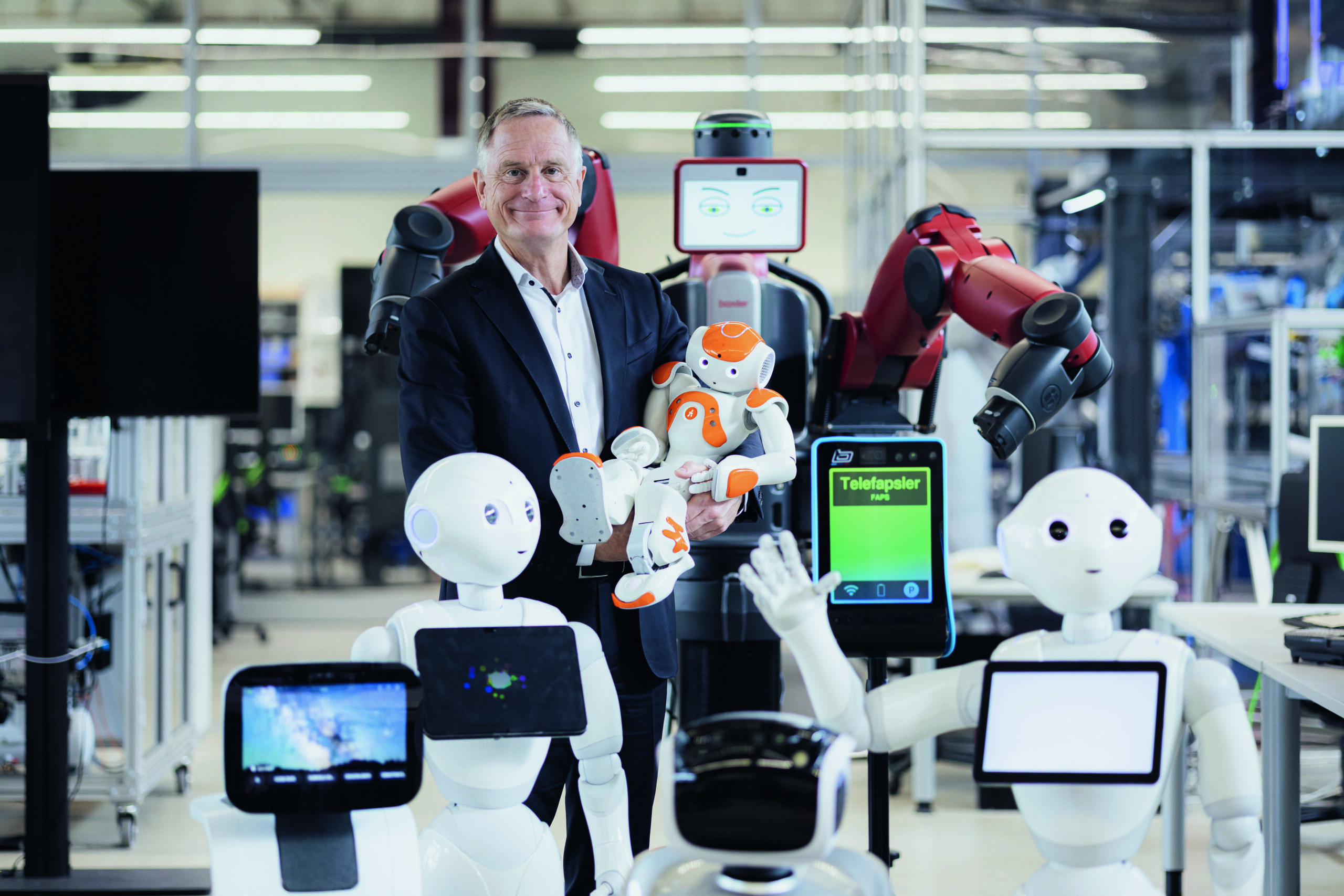Under Franke’s leadership, the Chair grew to nearly 100 employees. At 61, he not only wants to guide the researchers, but to inspire them. Above all, he wants to “encourage young engineers to bring great technologies to market in their own start-ups.” His goal as an engineer is to research disruptive technologies. These also include social robots. Their development is to be advanced within the research consortium “FORSocialRobots,” for which he serves as spokesperson and coordinator. The project, which will run until 2027, involves research institutions, companies, and users. “Humans and robots are to work together in flexible teams. New robot applications are to be researched and developed in several subprojects,” explains Jörg Franke.