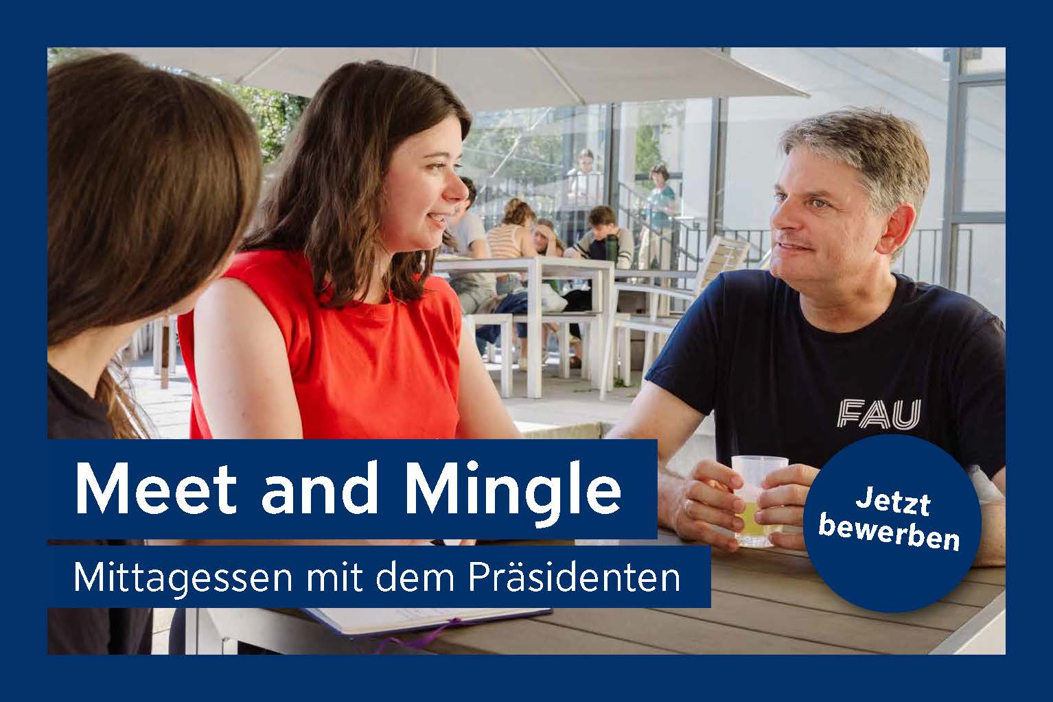 FAU President Joachim Hornegger is inviting 10 students to lunch in the cafeteria on April 24. The new format is called “Meet and Mingle” and gives FAU students the chance to ask the FAU President anything they’ve always wanted to know.